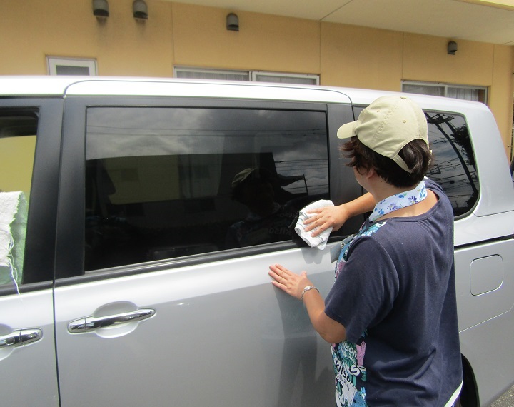 関係施設から依頼を受け、洗車作業を行っています。車体・内装共に綺麗に仕上げるため、様々な工程を行います。
